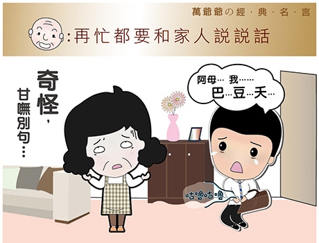 你有多久沒和家人坐下來好好說說話、聊聊天呢?本週一新的開始,萬爺爺建議大家,可以預先安排家庭日,和家人小聚一下,如果真的沒空,也可以打電話喔!