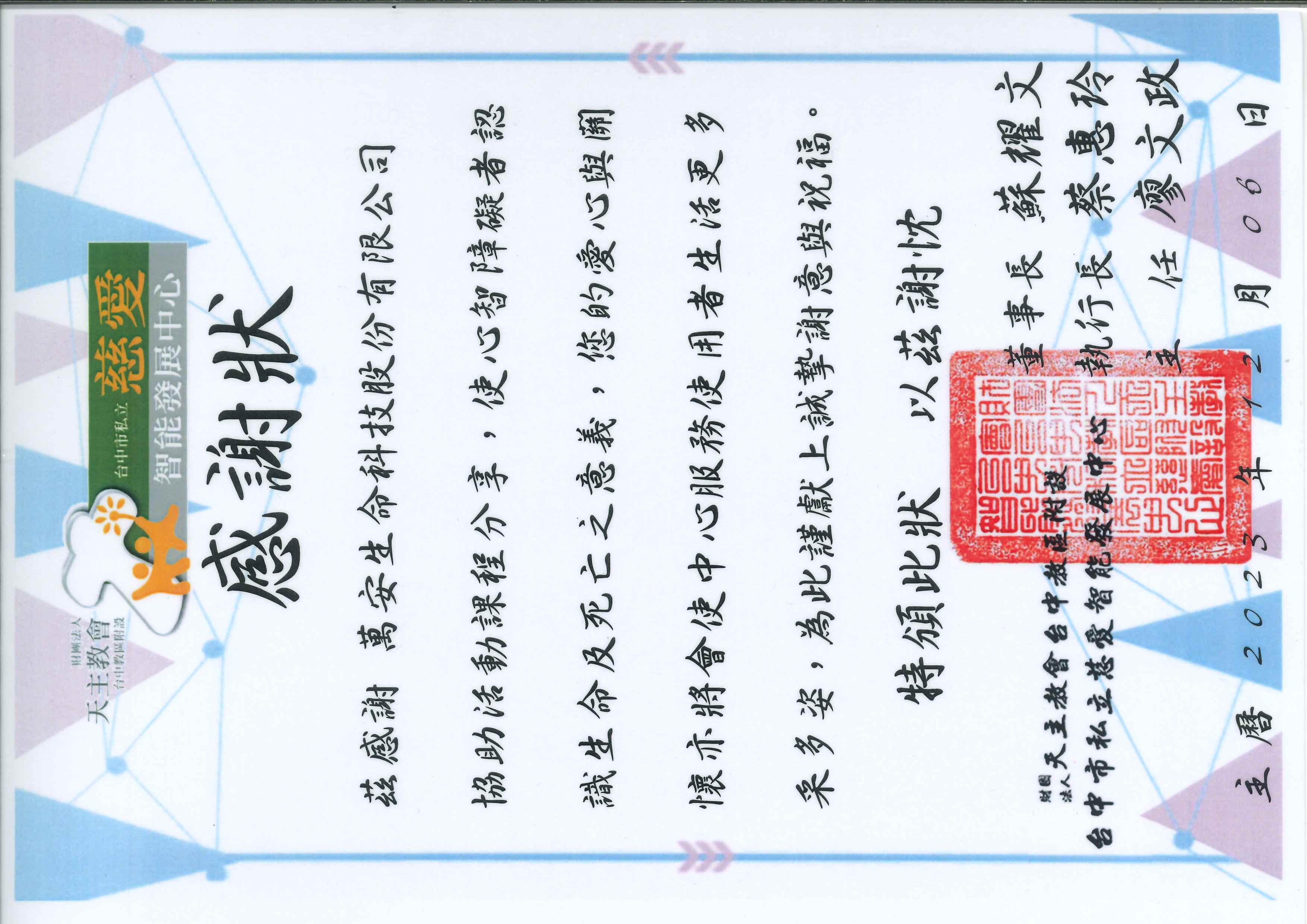 茲感謝萬安生命科技股份有限公司協助活動課程分享,使心智障礙者認識生命及死亡之意義。