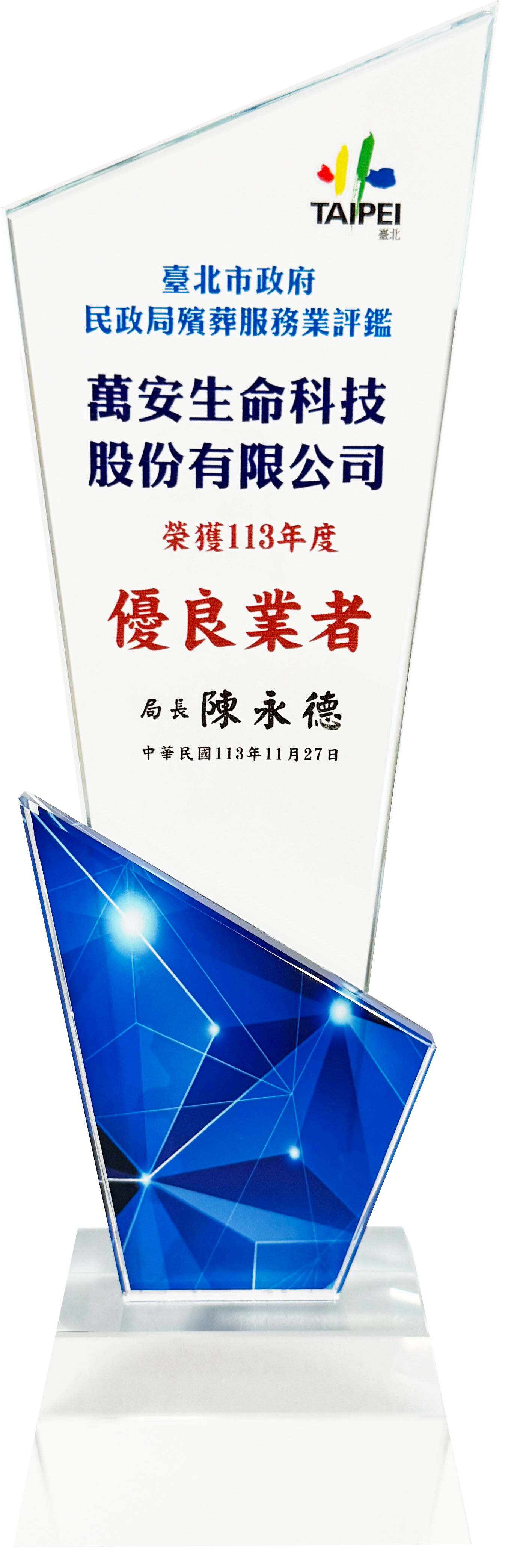 臺北市政府民政局殯葬服務業評鑑萬安生命科技股份有限公司榮獲113年度優良業者