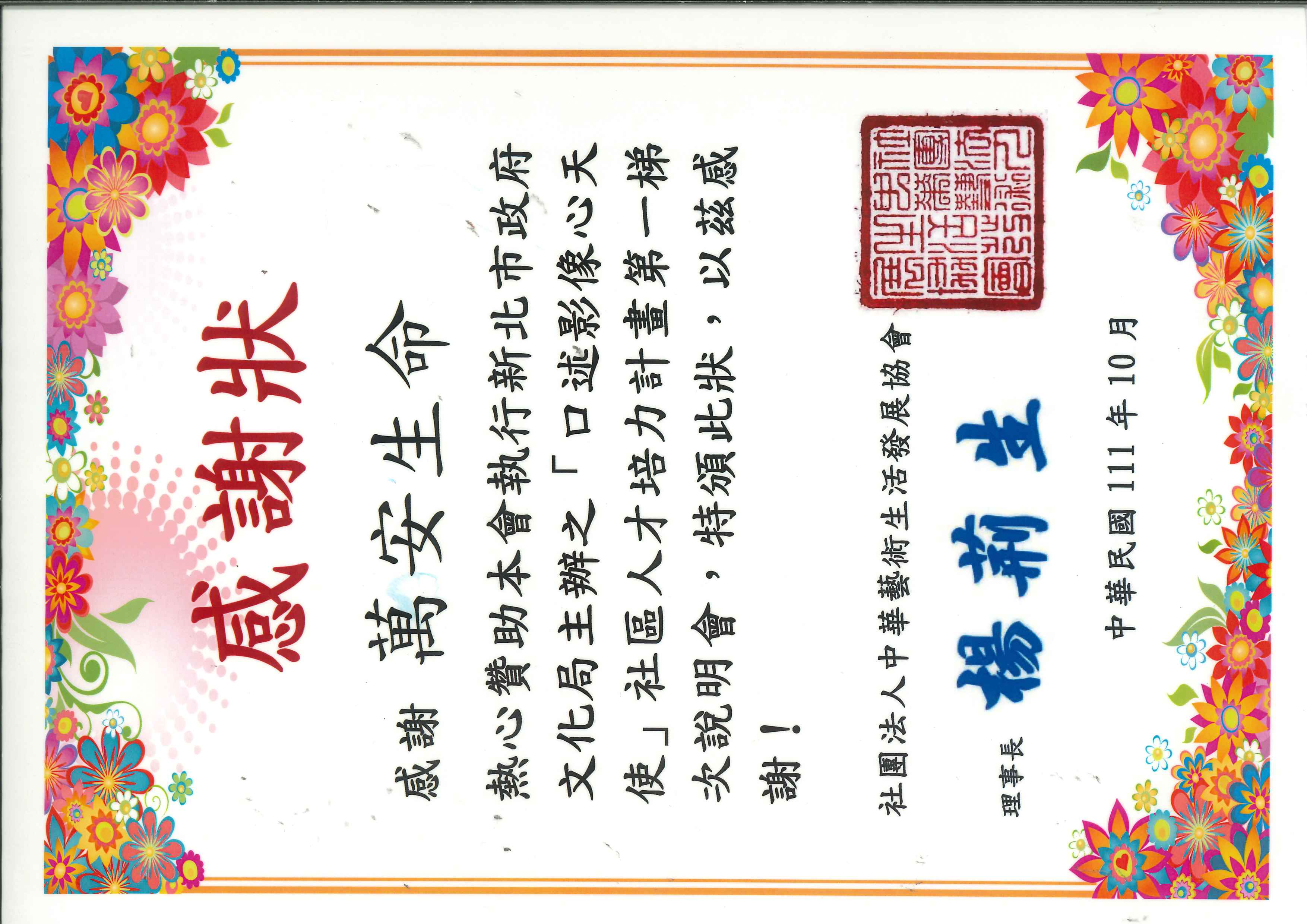 熱心贊助社團法人中華藝術生活發展協會執行「口述影像心天使」社區人才培力計畫第一梯次說明會