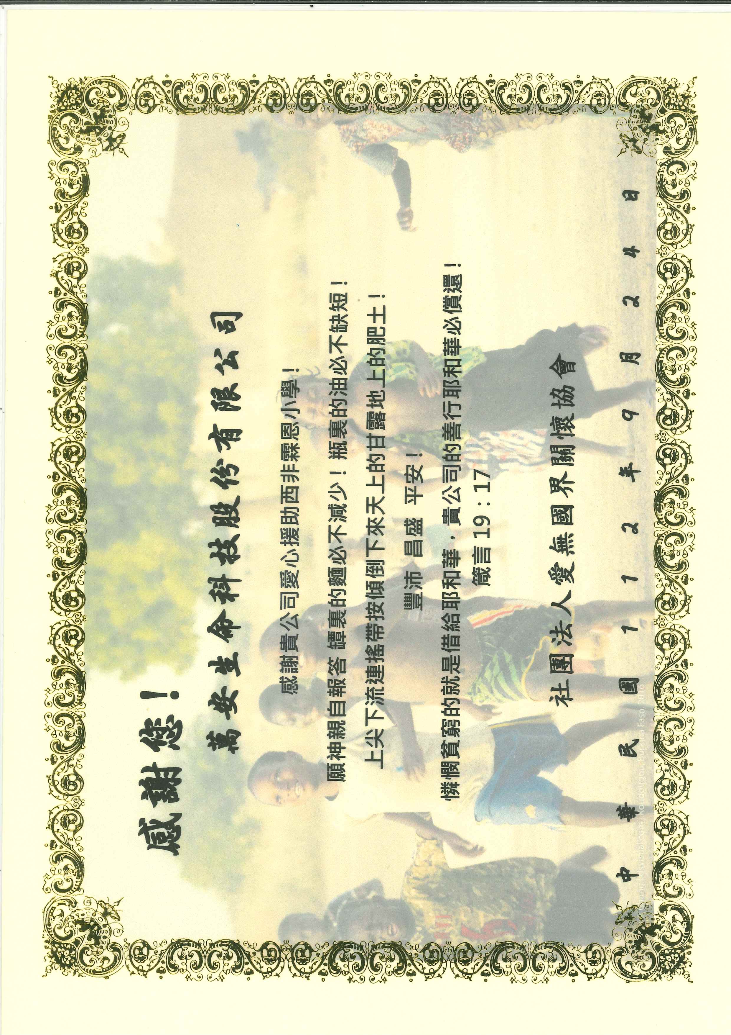 感謝萬安生命科技股份有限公司愛心援助西非霖恩小學!