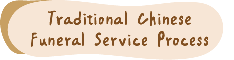 Beginning (playing lamenting music), presenting the deceased's life story & family acknowledgments, group worship by organizations, individual guest worship, viewing of the deceased, closing the casket, sealing, lighting incense, procession around the casket.